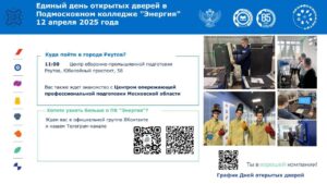 4 апреля, 20251️⃣2️⃣ апреля #ГАПОУ_МО_ПК_Энергия распахнет свои двери для будущих абитуриентов в 3️⃣ городских округах Московской области. Ждем всех на Единый День Открытых Дверей!
