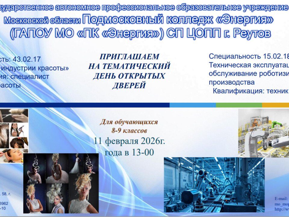 21 декабря, 2023📢 21 декабря 2023 года на базе Подмосковного колледжа «Энергия» в СП ЦОПП в городе Реутове состоится проектно-аналитическая, стратегическая сессия ✨ образовательно-производственного кластера по отрасли «Машиностроение» 💫