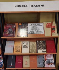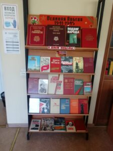 Оформлены тематические выставки, представлены книги, которые рассказывают о Великой Отечественной войне.