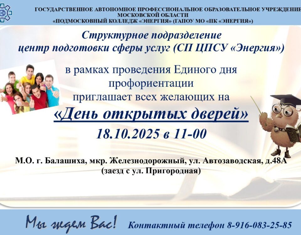 Я рад Вас приветствовать от лица Подмосковного колледжа «Энергия».