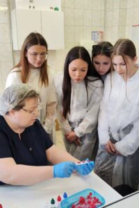 «Мы здесь уже не в первый раз. У наших ребят, которые учатся по специальности «сестринское дело», сегодня было особенно много впечатлений. Интересно и познавательно. В перспективе хотелось бы к вам привести лаборантов, — тем, кому непосредственно была бы интересна эта профессия. Ребята обучаются по специальности «биохимическое производство». Они узнают для себя много ценной информации»,