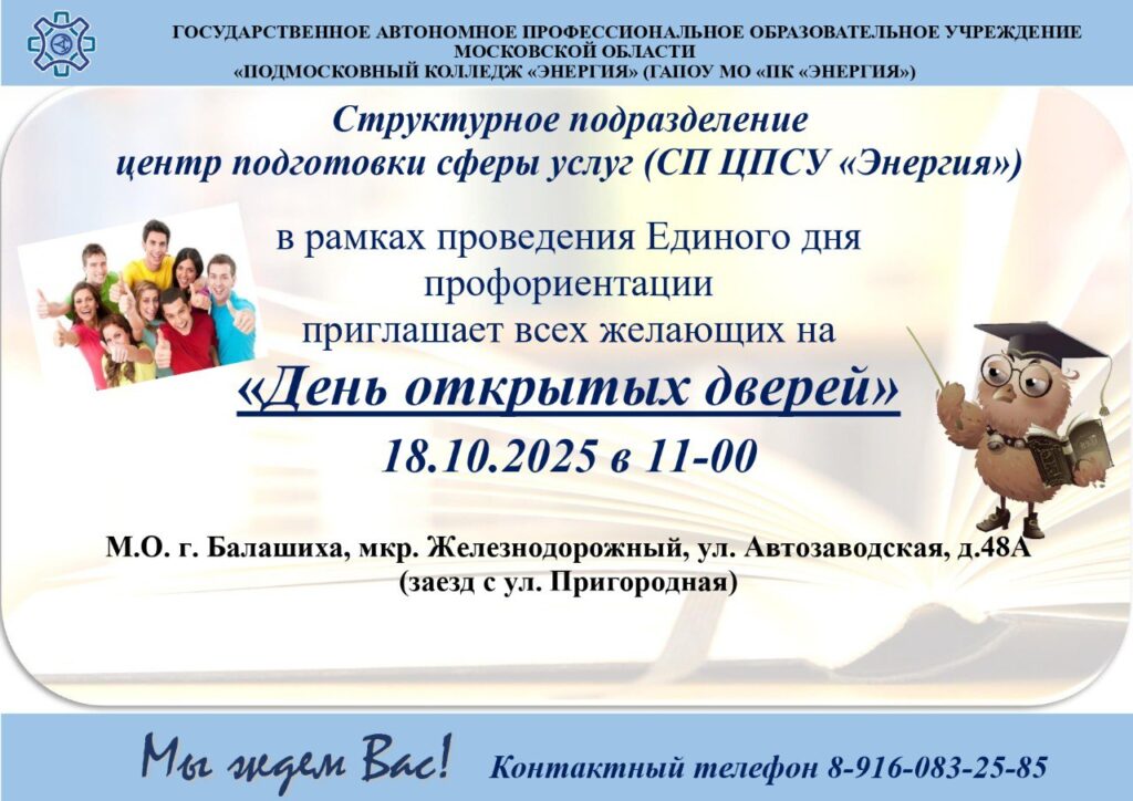В "Центр информационно-технологической подготовки" ГАПОУ МО "ПК Энергия" 17 февраля пройдет день открытых дверей. Приглашаем выпускников 9-ых классов, а также их родителей. Московская область, г. Ногинск, ул. 3-го Интернационала, д.59