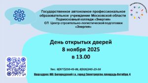 28 октября, 2025Приглашаем на День открытых дверей в СП ЦСЛП «Энергия» 8 ноября 2025 в 13.00.