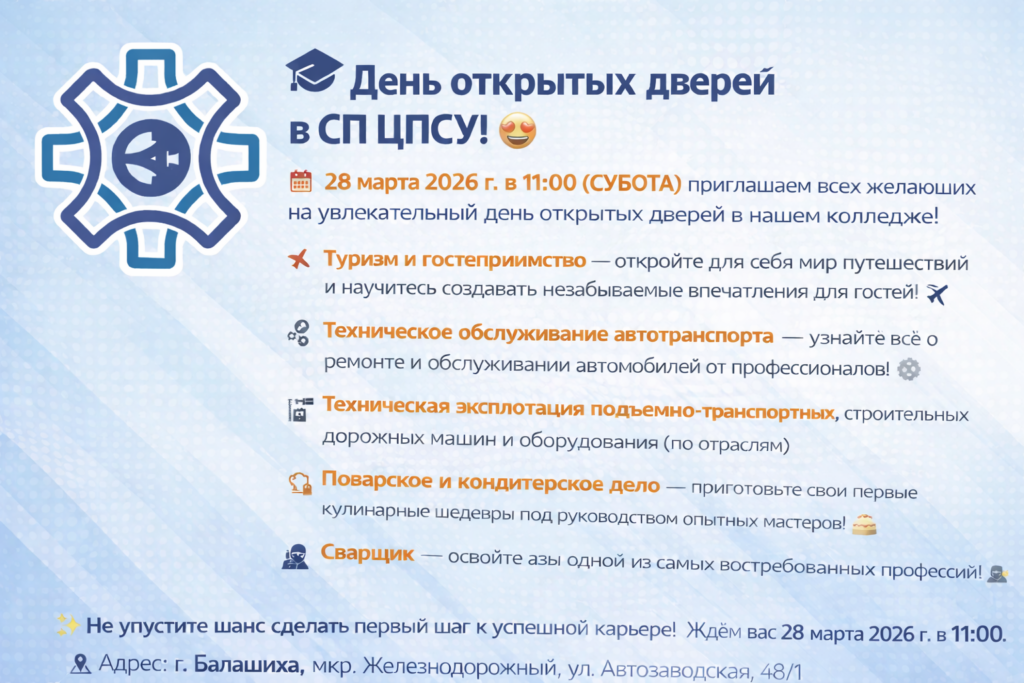 Приглашаем на День открытых дверей в СП ЦСЛП «Энергия»