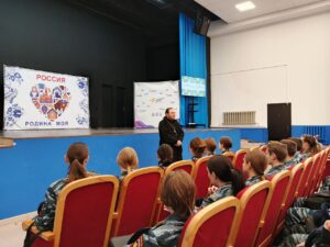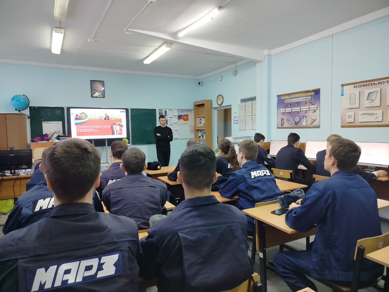 Студенты с преподавателями обсудили роль личности в судьбе страны и малой родины, вклад представителей российских народов в защиту Отечества, преемственность поколений героев.