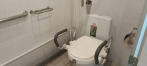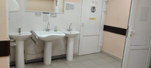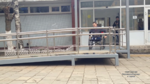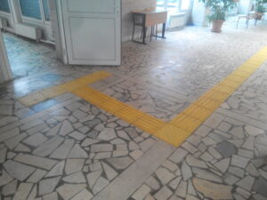 Установлен: пандус с антискользящей плиткой, поручни для инвалидов и МГН, бегущая строка. Имеется гусеничный подъемник, инвалидная коляска с электроприводом. Санузел, адаптированный для инвалидов, оборудован специальной удобной сантехникой, поручными, тактильными указателями, лифтом, парковкой для инвалидов. В фойе установлены двери с расширенным проемами, поручни с антибактериальным покрытием, тактильные пиктограммы, тактильные мнемосхемы.